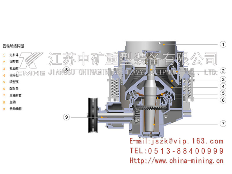 圓錐式破碎機(jī)廣泛用于礦山行業(yè)、冶金行業(yè)、建筑行業(yè)、筑路行業(yè)、化學(xué)行業(yè)及硅酸鹽行業(yè),適用于破碎堅(jiān)硬與中硬礦石及巖石,如鐵礦石、石灰石、銅礦石、石英、花崗巖、砂巖等。圓錐破碎機(jī)具有破碎力大、效率高、處理量高、動(dòng)作成本低、調(diào)整方便、使用經(jīng)濟(jì)等特點(diǎn)。由于零件選材與結(jié)構(gòu)設(shè)計(jì)合理,故使用壽命長(zhǎng),而破碎產(chǎn)品的粒度均勻,減少了循環(huán)負(fù)荷,在中、大規(guī)格破碎機(jī)中,采用了液壓清腔系統(tǒng),減少了停機(jī)時(shí)間,且每種規(guī)格的破碎機(jī)腔型多,用戶可根據(jù)不同的需要,選擇不同的腔型,以更好的適應(yīng)用戶需要。本機(jī)密封采用潤(rùn)滑脂密封,避免了給水及排水系統(tǒng)易堵塞的弊病及水油易混合的缺陷,彈簧保險(xiǎn)系統(tǒng)是過(guò)載保護(hù)裝置,可合異物、鐵塊通過(guò)破碎腔而不危害破碎機(jī)。