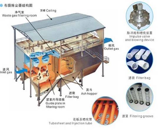 長(zhǎng)袋脈沖袋式除塵器的主體結(jié)構(gòu)由箱體、袋室、灰斗、進(jìn)出風(fēng)口四大部分組成。并配有基礎(chǔ) 支柱、爬梯、欄桿、檢修門、壓縮空氣氣路系統(tǒng)、清灰控制系統(tǒng)、卸灰系統(tǒng)等等,并可根據(jù)用戶要求選配先進(jìn)的設(shè)備運(yùn)行監(jiān)測(cè)系統(tǒng)。