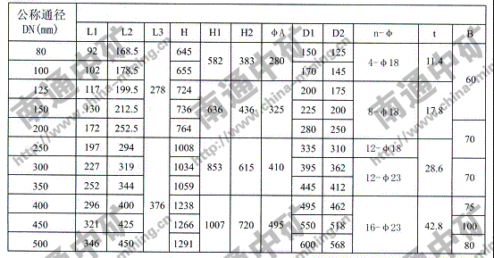 公稱通經(jīng)  |             法蘭式DN50~DN600  |