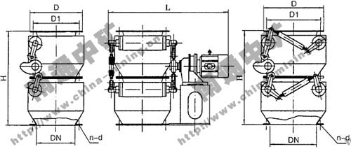 DN  |             D1  |             D  |             H  |             H1  |             L  |             n-d  |             卸灰能力m3/h  |             傳動(dòng)裝置型號(hào)  |             開閉頻率次/min  |             功率kw  |