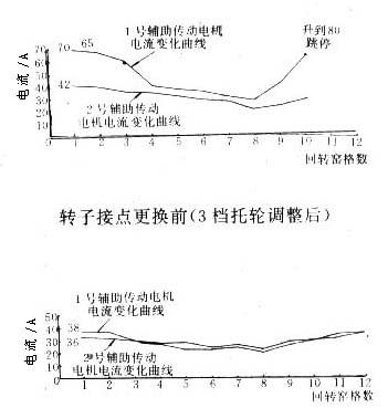 (4)主傳動2號主電機,已多次發(fā)生過碳刷整排燒壞事故。主要原因是整流子磨損嚴重,換向困難,造成幾何中心線偏移,電流分布不均衡,電機帶病運行。