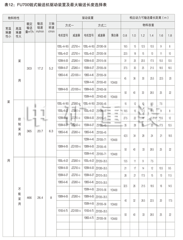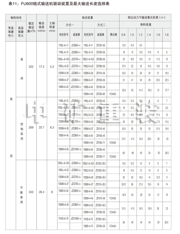 基本輸送量是以水泥等為物料制定的,實際輸送量可掌握在此表中推薦值小于0—20%范圍內。當用于其他行業(yè)輸送磨琢性小,且溫度<60℃的物料時,鏈速還可加快(鏈速可達40m/min,參見表2)。具體可與江蘇中礦技術部聯(lián)系。聯(lián)系電話:0513-88400999。