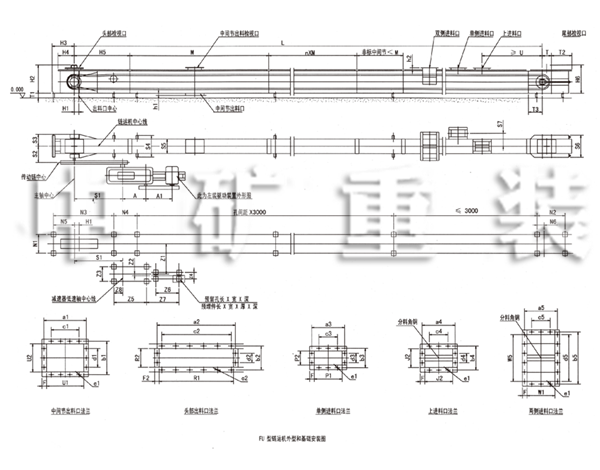 *兩臺鏈運機上下交叉銜接時,應分別采用中間節(jié)底面出料口(有帶閘的和不帶閘的兩種) 和兩側進料口。
