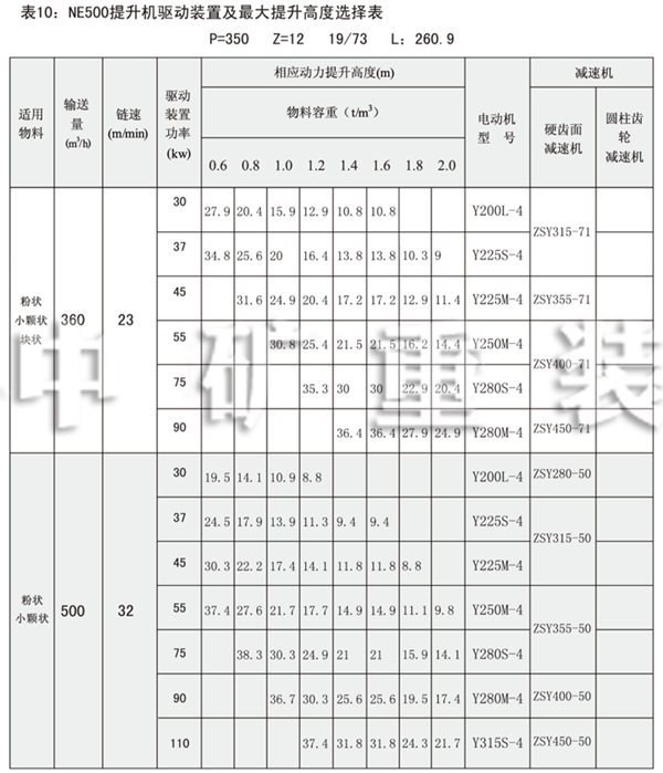 表1:NE板鏈斗式提升機(jī)技術(shù)規(guī)范表