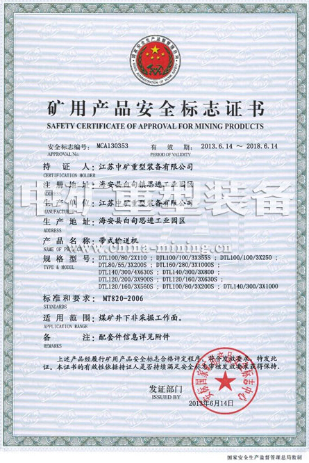 1.7.1 與輸送機配套的電動機、電控設備應符合GB3836.1-2000《爆炸性氣體環(huán)境用電氣設備 第1部分:通用要求》的規(guī)定,并具有安全標志準用證;