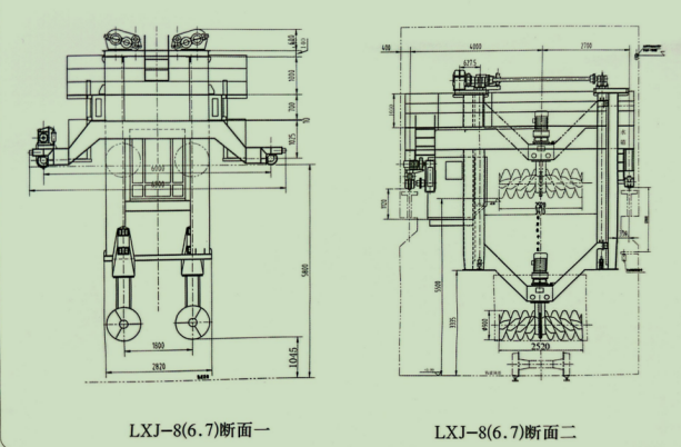 LXJ型系列雙螺旋卸車(chē)機(jī)主要由螺旋本體、大車(chē)行走、小車(chē)行走、螺旋提升裝置、鋼結(jié)構(gòu)、司機(jī)室、噴淋系統(tǒng)所組成。